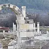 Stratonikeia atik kentinin Kuzey Giriş kapısındaki tonlarca ağırlıktaki sütunların tek parça halinde işlendikten sonra ocaktan antik kente taşındığı açıklandı.