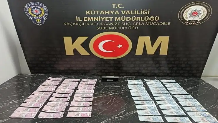 Kütahya'da ormanlık arazide mantar toplayan bir kişi tarafından toprağın altına gömülü vaziyette sahte para ve para kontrol cihazı bulundu.