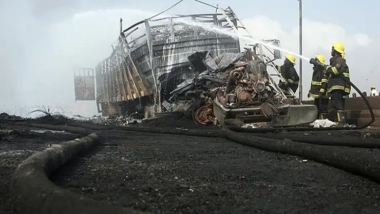 Kamyonun devrildiği kazada en az 77 kişinin yaşamını yitirdiği, 60'a yakın kişinin yaralandığı kaydedildi.