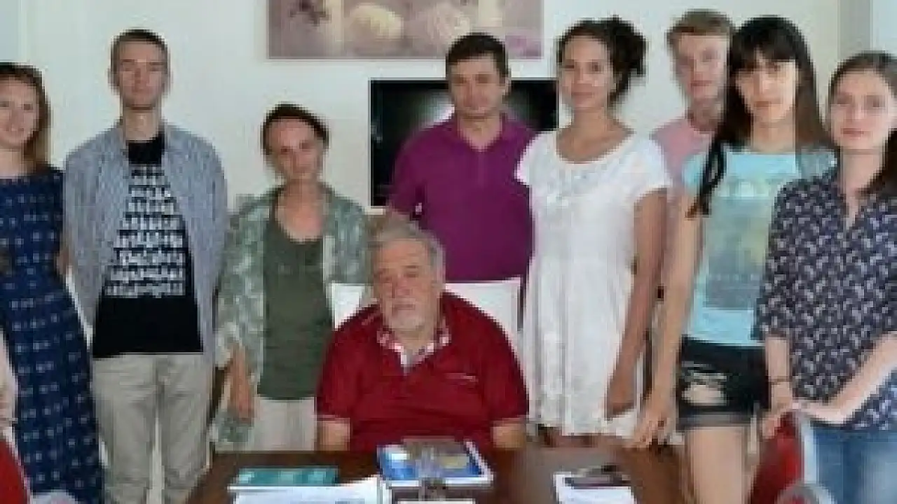 Tarihçi-yazar Prof. Dr. İlber Ortaylı, Türk İşbirliği ve Koordinasyon Ajansı Başkanlığının (TİKA) katkılarıyla Balıkesir'in Ayvalık ilçesinde, Rus doktora öğrencisi ve akademisyenlere Osmanlıca öğretiyor.