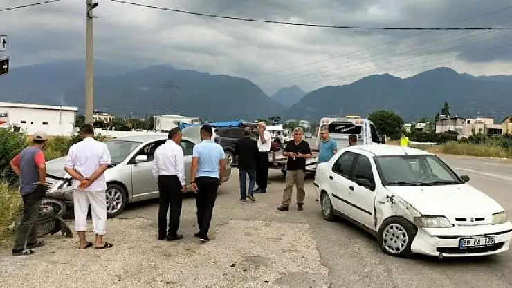 Osmaniye'nin Düziçi ilçesinde 2 otomobil ile 1 motosikletin çarpışması sonucu meydana gelen kazada 2 kişi yaralandı.