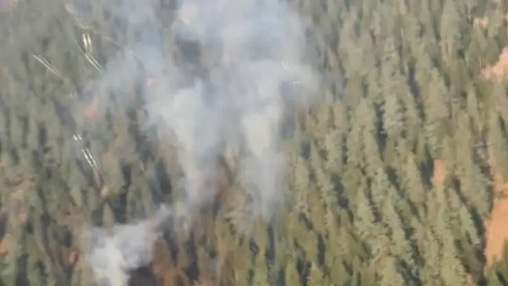 Vatandaşların ihbarı üzerine bölgeye sevk edilen söndürme helikopteri, 7 arazöz ve 34 personel, yangını kontrol altına almak için çalışma başlattı.