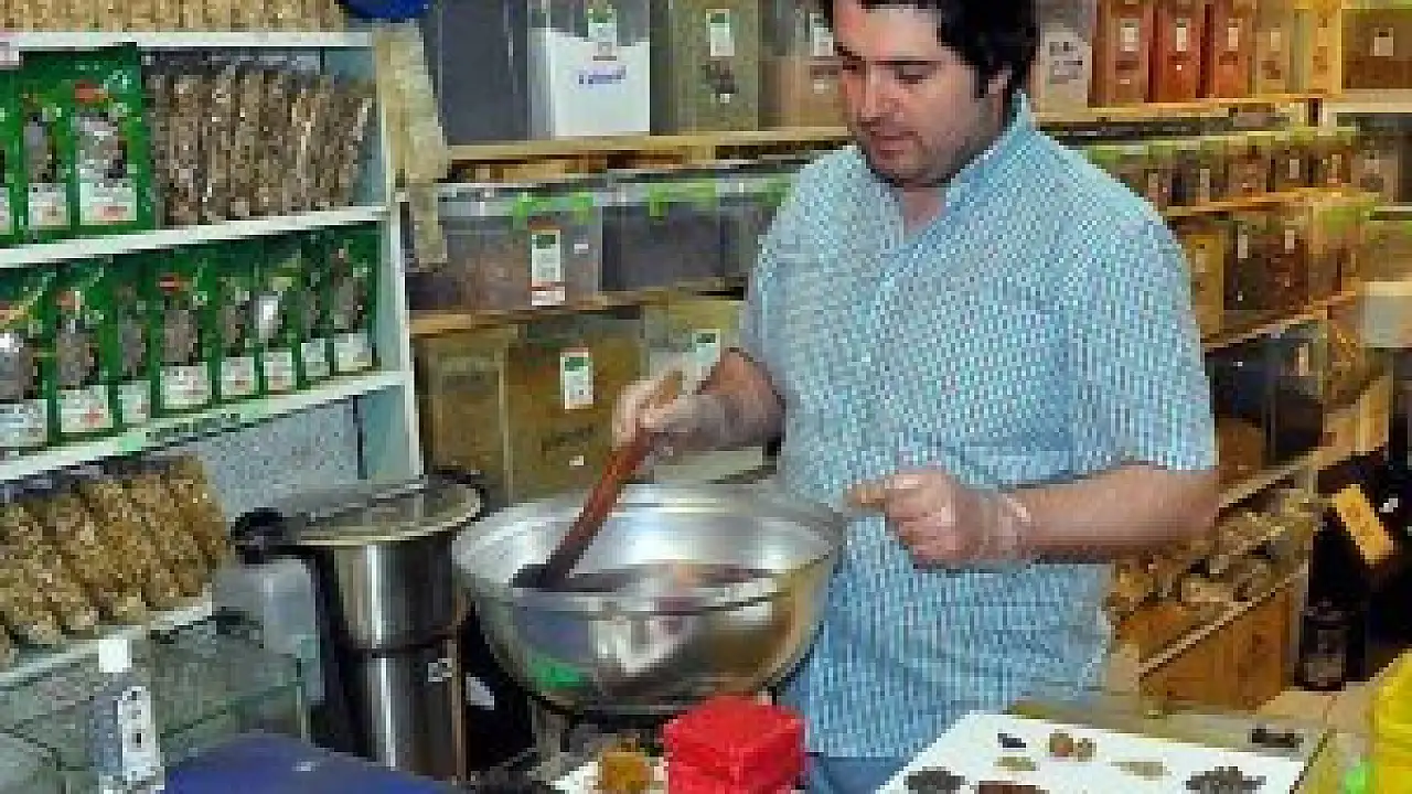 Amasya'nın Merzifon ilçesinde aktarlık yapan Yıldırım, Amasya Yazma Eserler Kütüphanesinden edindiği 568 yıllık Osmanlı şerbeti tarifi ile ürettiği 'demirhindi şerbeti'ni müşterilerine ikram ediyor.