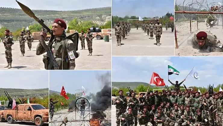 Türk Silahlı Kuvvetlerinin (TSK) Fırat Kalkanı ve Zeytin Dalı harekatlarında yer alan Özgür Suriye Ordusu (ÖSO) bileşenlerinden Hamza Tümeni'nin, terör örgütünden arındırılan askeri eğitim alanlarındaki tatbikatı ve hazırlıkları görüntülendi.