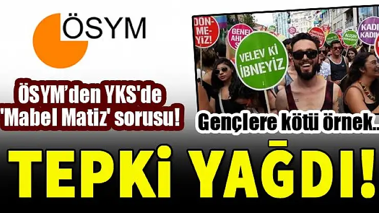 'Velev ki ibneyiz' pankartı taşıyan LGBT destekçisi Mabel Matiz'in şarkısının YKS'de sınav sorusu olarak sorulması büyük tepki çekti. Sosyal medyadan tepki gösteren kullanıcılar, 'Başka örnek gösterecek kimseyi bulamadınız mı?' sözleriyle tepkilerini dile getirdi.