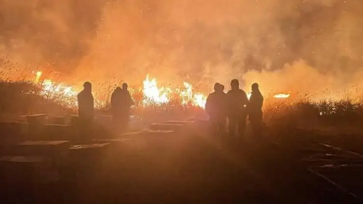 İtfaiye ekipleri, yangının yerleşim yerlerine sıçramaması için söndürme çalışmalarını sürdürüyor.