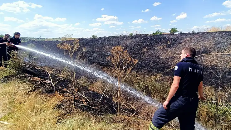 Edirne'de yerleşim yerlerine yakın otların bulunduğu bölgede yangın çıktı. Alevler, evlere ulaşmadan itfaiye tarafından söndürüldü.