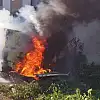 Orhangazi'de ana yol üzerinde bulunan bir oto galeri önünde bulunan minibüs, alev aldı.