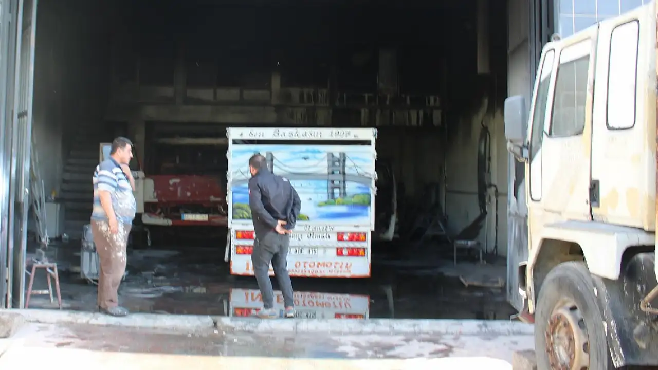 Oto tamirhanesindeki yangın... 1 kişi yaralandı 3 kamyonet kullanılamaz hale geldi