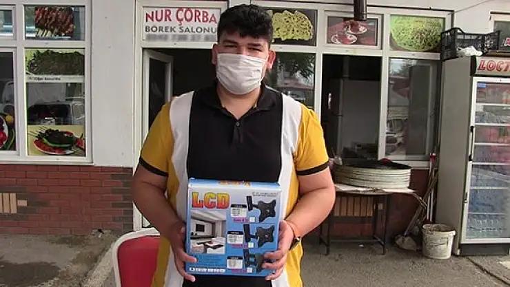 Bir süre sonra gelen kargo paketini açan Şahin, teyp yerine televizyon askı aparatı ile karşılaştı.