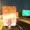 Otobanda motosiklet sürücüsünün tehlikeli yolculuğu
