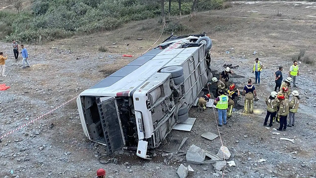 Otobüste sürücü ve 46 kişinin bulunduğu, kazada ilk belirlemelere göre 29 kişinin yaralandığı öğrenildi.