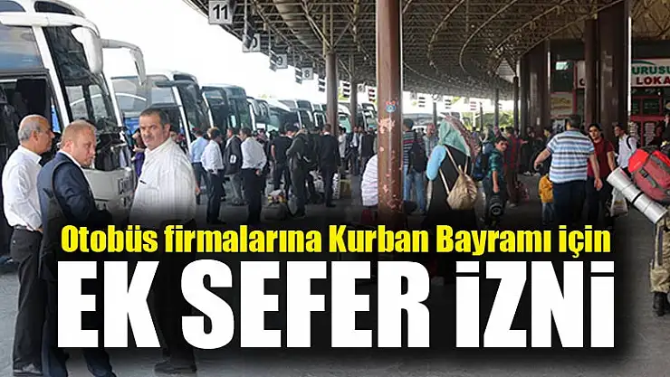 Şehirler arası sefer yapan otobüs firmaları, Kurban Bayramı tatili süresince ek seferler düzenleyebilecek. Ek sefer izni 15 Ağustos'ta başlayacak, 28 Ağustos'ta sona erecek.