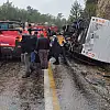 BURSA'da, yağış nedeniyle virajlı yolda kayarak karşı şeride geçen otobüs otomobille çarpıştıktan sonra devrildi.