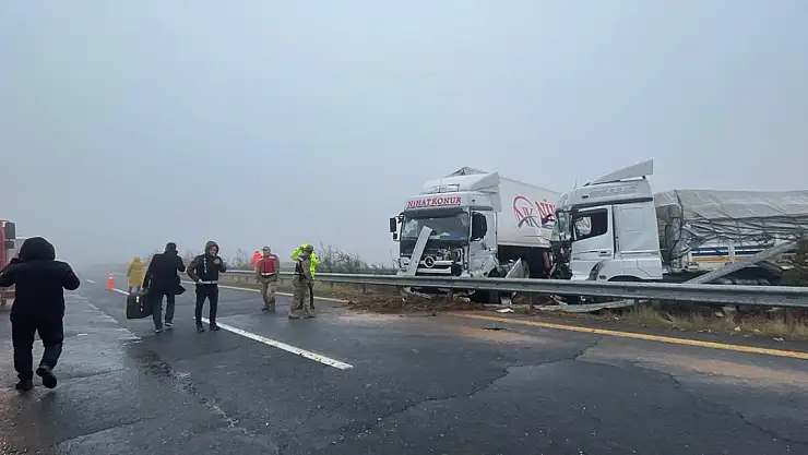 Yoğun sisin ve yağmurun etkili olduğu Şanlıurfa-Gaziantep otoyolu bağlantı yolunda 34 FVK 835 plakalı yolcu otobüsüyle aynı yöne seyir halindeki 67 AK 846 ve 33 DES 29 plakalı tırlar çarpıştı.