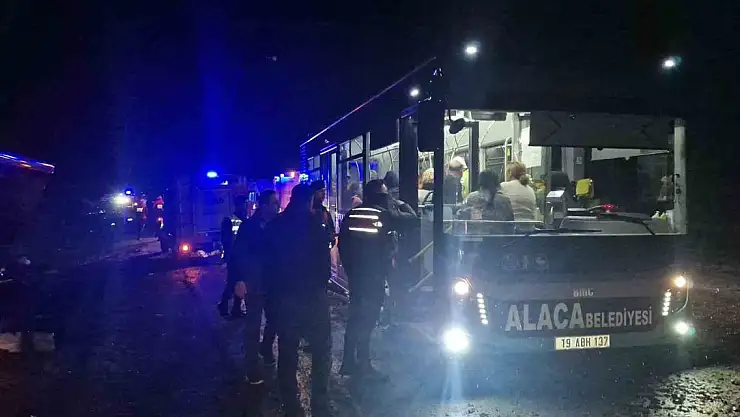Kazayı gören vatandaşlar durumu 112 Acil Çağrı Merkezi'ne bildirdi. İhbar üzerine olay yerine sağlık, jandarma ve Alaca Belediyesi itfaiye ekipleri sevk edildi. Olay yerine gelen itfaiye ekipleri tarafından yaralılar otobüsün camından çıkartıldı. Sağlık ekipleri tarafından ilk müdahaleleri yapılan yaralılar, çevre hastanelere kaldırıldı. Tedavi altına alınan yaralılardan 3'ünün hayati tehlikesinin olduğu öğrenildi. Kazadan yaralanmadan kurtulan vatandaşlar ise Alaca Belediyesi'ne ait araçla Çorum Şehirler Arası Otobüs Terminali'ne götürüldü.