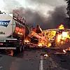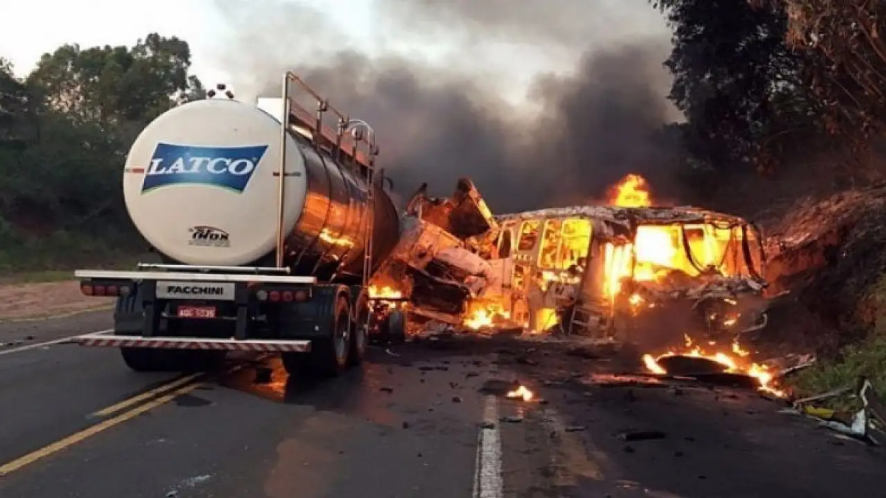 Brezilya'da bir süt tankeri hastaları taşıyan otobüsle çarpıştıktan sonra alev aldı.