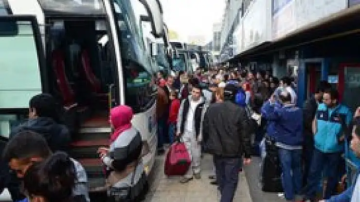 Şehir dışından gelen bazı otobüsler, yoğunluk nedeniyle otogara 1-1,5 saat gecikmeli giriş yapabildi.