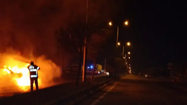 Otomobil, 2 tıra çarptıktan sonra alev aldı