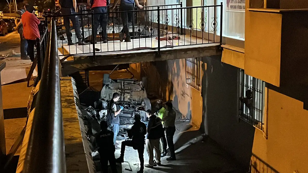 Kaza, saat 01.30 sıralarında Barış Mahallesi Dr. Zeki Acar Caddesi'nde meydana geldi. Emre Tuzan'ın (45) kontrolünü yitirdiği 06 BGF 837 plakalı otomobil, yoldan çıkıp yaklaşık 3 metre yükseklikten bir apartmanın önündeki boşluğa uçtu. Otomobil ters dönerken, binada oturanlar gürültü nedeniyle tedirginlik yaşadı. Araçta sıkışan sürücü Emre Tuzan ile yanındaki kardeşi Ahmet Tuzan (40) yaralandı.