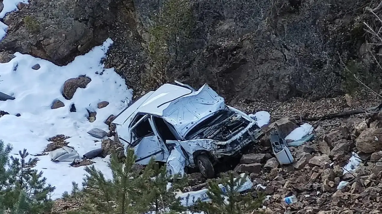 Gümüşhane'nin Torul ilçesinde kontrolden çıkan otomobil, 80 metre yükseklikten uçuruma yuvarlandı.
