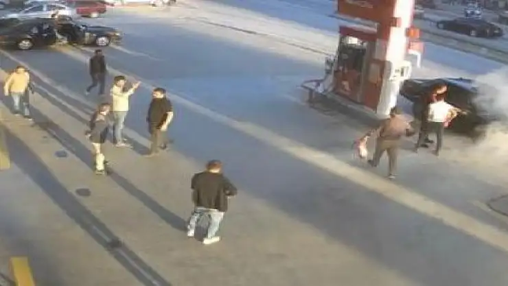SAKARYA'nın Kaynarca ilçesinde sürücüsü yakıt almak için istasyona gelen bir otomobil alev aldı. İstasyon çalışanlarının yardımıyla söndürülen yangın anları saniye saniye güvenlik kamerasına yansıdı.