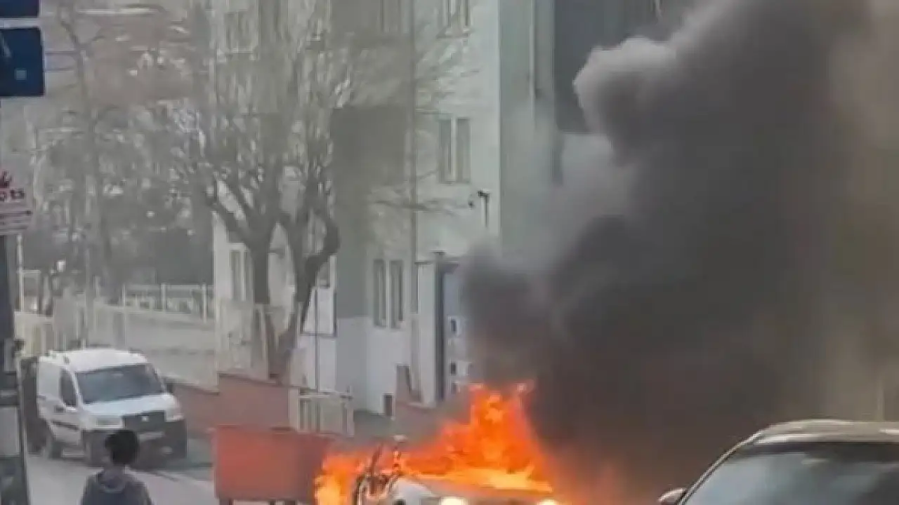 GÜNGÖREN'de park halindeki otomobil alev alev yandı. Yangın, itfaiye ekiplerinin müdahalesiyle kısa sürede söndürüldü.