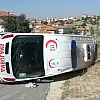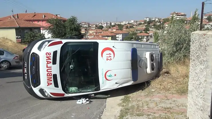 Otomobilin çarpmasıyla 112 ambulansının devrildiği kazada, 2'si sağlık görevlisi 4 kişi yaralandı.