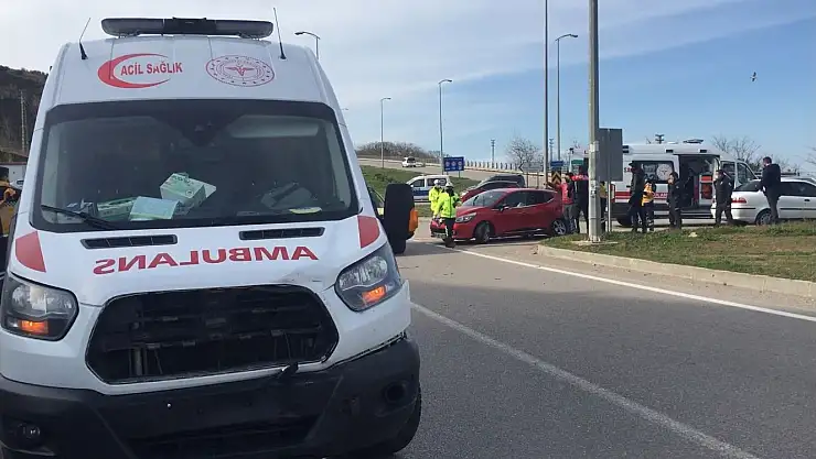 Sinop'ta kavşaktan dönmeye çalışan otomobil, seyir halindeki ambulansla çarpıştı.