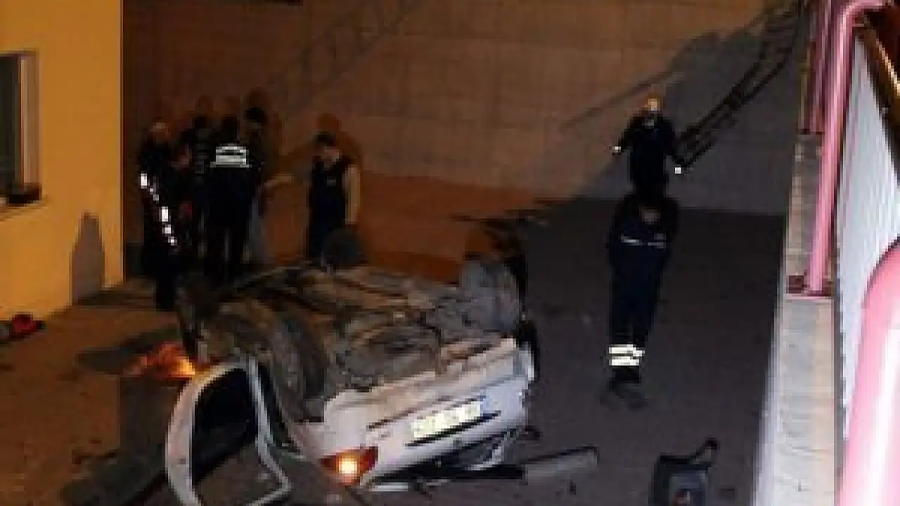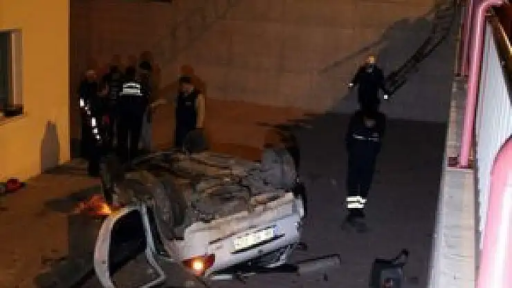 Kayseri'de meydana gelen trafik kazasında bir otomobil, yaklaşık 5 metre yükseklikten apartman bahçesine uçtu.