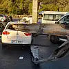 BAKIRKÖY, D-100 Karayolu'nda seyir halindeki otomobil, yol ayrımında sürücüsünün kontrolünden çıkarak bariyerlere çarptı.