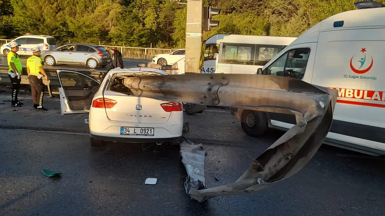 Otomobil, bariyerlere ok gibi saplandı. Çevredekiler itfaiye, polis ve sağlık ekiplerine haber verdi.
