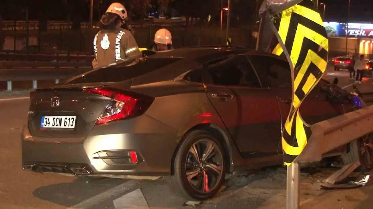 Kadıköy'de 1. Çevreyolu üzerinde otomobilin bariyere saplandığı kazada 3 kişi yaralandı.