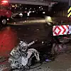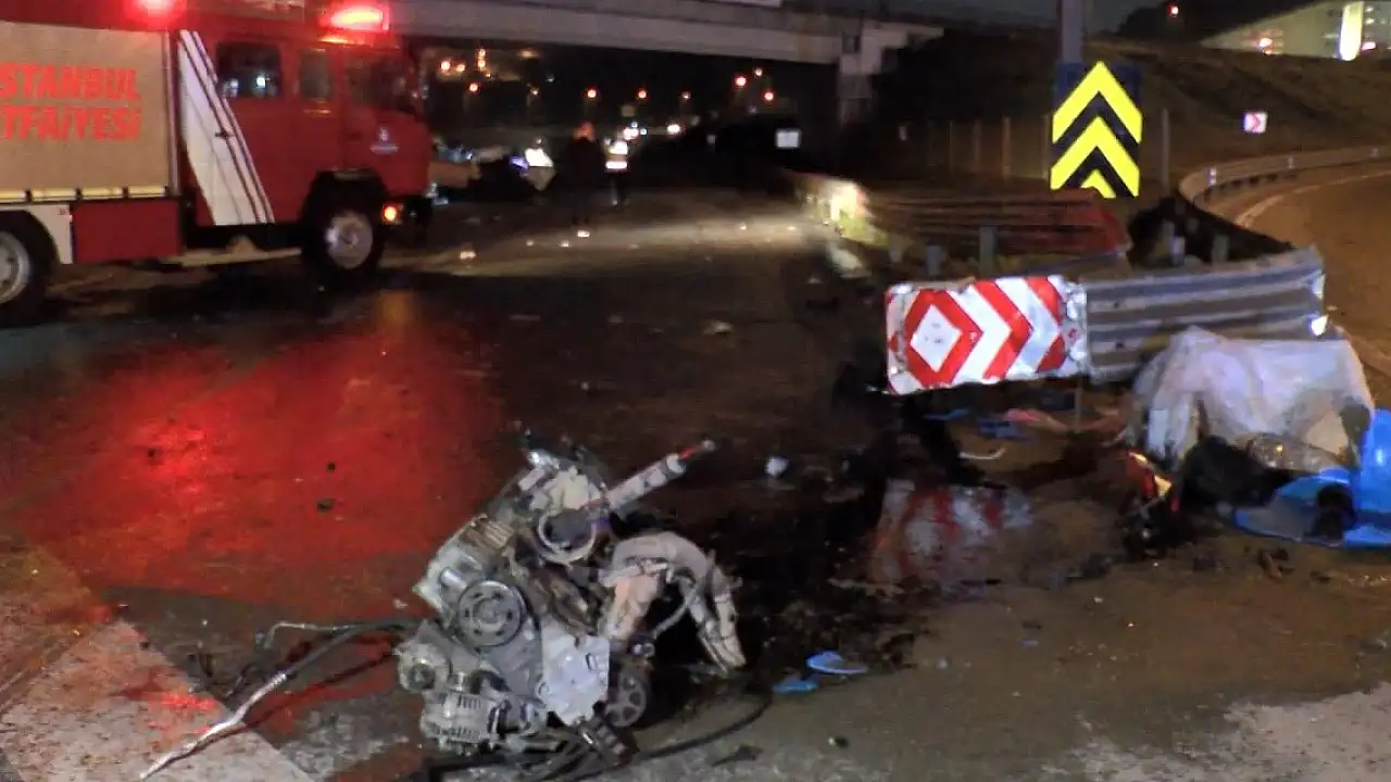 ÇEKMEKÖY'de sapağa hızlı girdiği iddia edilen otomobil, sürücüsünün kontrolünden çıkarak bariyerlere çarptı. Çarpmanın etkisi ile otomobilin motoru koparken, otomobilde bulunan 2 kişi yola fırladı. Sürücü ise otomobil içinde sıkıştı.