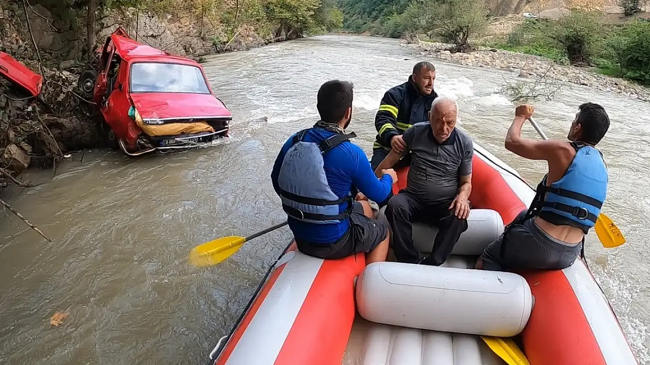 Düzce'nin Cumayeri ilçesinde Melen Çayı yatağına devrilen otomobilden çıkan sürücü Ahmet Çakmak'ı, rafting yapan sporcular kurtardı. Bota alınan Çakmak, sağlık ekibine teslim edildi.