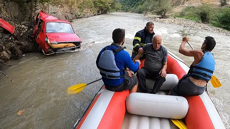 Otomobil çay yatağına yuvarlandı, sürücüyü raftingciler kurtardı
