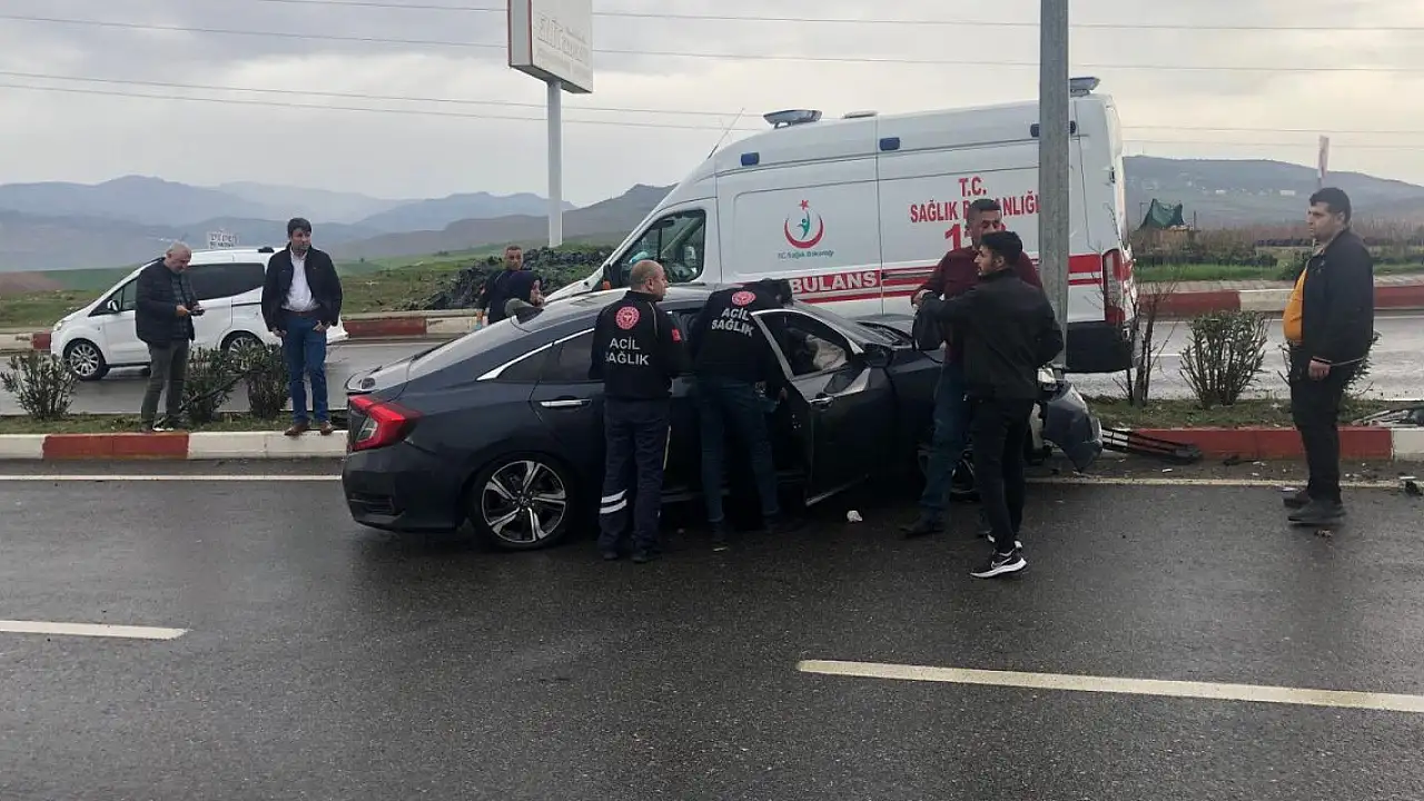 SİİRT'te sürücüsünün kontrolünden çıkıp, refüjdeki aydınlatma direğine çarpan otomobildeki 2 kişi yaralandı.