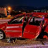 Çarpmanın etkisiyle savrulan otomobil, bariyerlere vurdu.