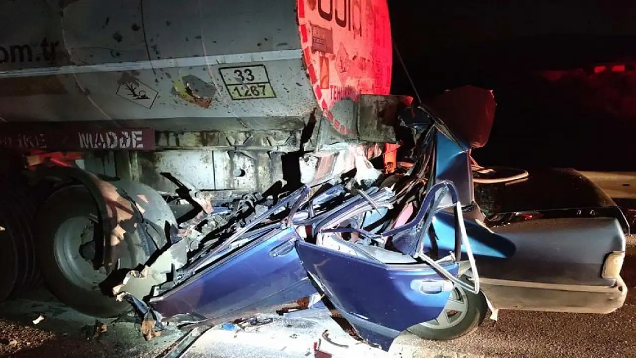 Otomobil, emniyet şeridindeki yakıt tankerine çarptı: 3 ölü