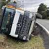 Otomobil hatalı sollama yaptı, kamyon devrildi