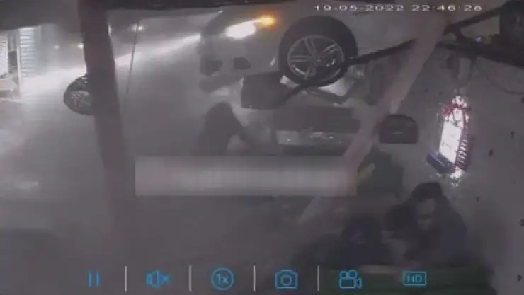 MARDİN'de sürücüsünün kontrolünden çıkan otomobil bodrum katta bulunan kafeye girdi. Güvenlik kamerasına yansıyan kazada 4 kişi yaralandı.