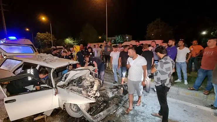 Kaza, gece yarısı merkez Yüreğir ilçesi D-400 Karayolu'nda meydana geldi. Kırmızı ışıkta bekleyen Nusret Koçhan yönetimindeki 01 S 0501 plakalı işçi servisine, sürücüsünün kimliği henüz tespit edilemeyen 01 HR 993 plakalı otomobil hızla çarptı. Kazanın ardından otomobil alev alırken, yangın vatandaşlar tarafından büyümeden söndürüldü. Kazada, otomobil sürücüsü aracında sıkışırken, işçi servisindeki 5 kişi hafif şekilde yaralandı. İhbar üzerine kaza yerine itfaiye, sağlık ve polis ekipleri sevk edildi.
