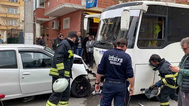 Tekirdağ Çorlu'da direksiyon başında sürücüsünün rahatsızlık geçirdiği otomobilin işçi servisiyle kafa kafaya çarpıştığı feci kaza kameraya yansıdı.