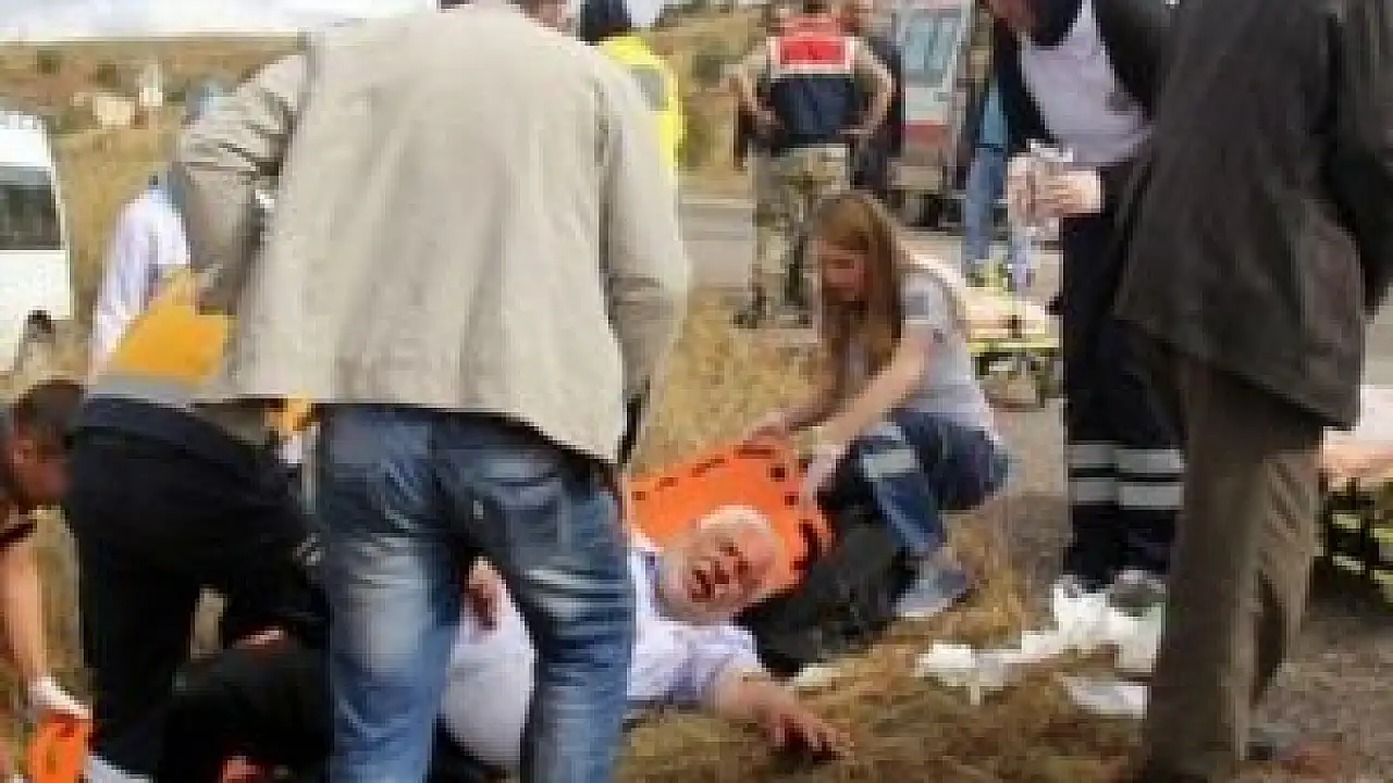 Alınan bilgiye göre, Sivas'tan Zara ilçesine giden İbrahim Ş. (83) idaresindeki 58 DP 742 plakalı otomobil, Sivas-Erzincan karayolunun 33. kilometresinde, kavşakta çalışan işçilere çarptı.