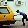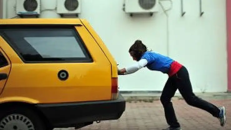 Sabahları denizde kondisyon, akşamları ağırlık ve minderde teknik çalışan Hatice Ece, salon etrafında antrenörüne ait otomobili de iterek kuvvetini arttırmaya çalıştı.