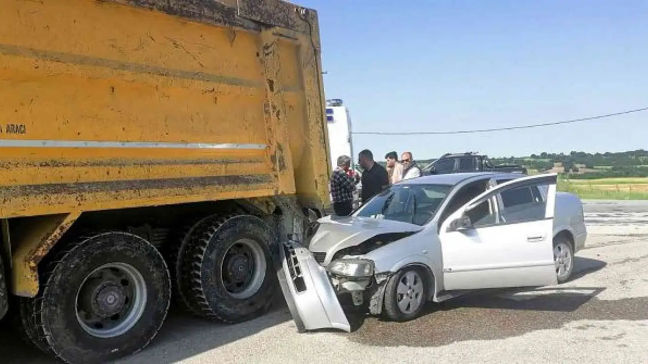 Tekirdağ'da kavşakta dönüş yapan kamyona arkadan çarpan otomobilin sürücüsü yaralandı.