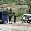 Hurdaya dönen araç, iki yol arasındaki boşlukta sıkıştı.