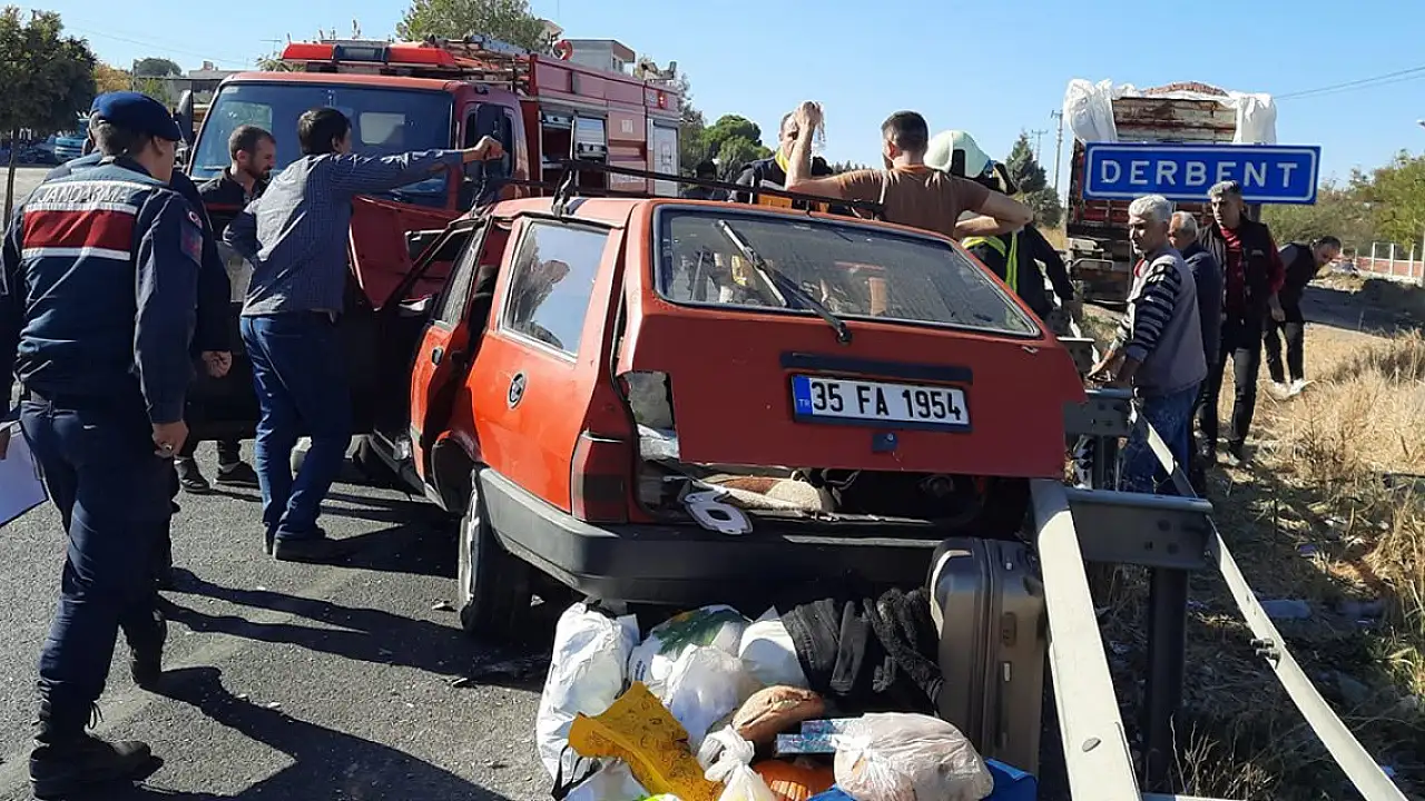Kaza, bugün saat 14.00 sıralarında İzmir-Ankara karayolu üzerine Derbent Mahallesi girişinde meydana geldi. Osman Yavuz'un kullandığı 35 FA 1954 plakalı otomobil, aynı yönde seyreden Halil Korhan (50) yönetimindeki 45 ZD 0914 plakalı şehir içi yolcu minibüsüne arkadan çarptı. Çarpmanın etkisiyle otomobil, yol kenarındaki bariyerlere çarparak durabildi. Çevredekilerin ihbarı üzerine olay yerine sağlık, itfaiye, jandarma ve polis ekipleri sevk edildi. Kazada otomobilde sıkışan Iraz Kabadayı (70) itfaiye ekiplerinin çalışmasıyla kurtarılırken, otomobil sürücüsü Osman Yavuz ile diğer yaralılar Semiha Yıldız (70) ve Havva Yavuz (55) ambulanslarla kentteki hastanelere kaldırıldı. Otomobil sürücüsü Osman Yavuz'un ağır yaralandığı kazada otomobildeki 3 kişinin hayati tehlikesinin bulunmadığı bildirildi.