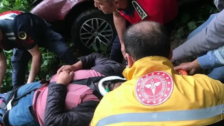 Otomobil ormanlık alana uçtu: 1 yaralı