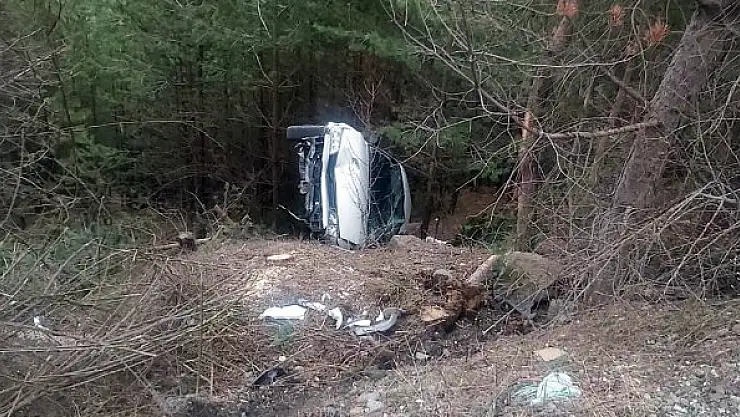 Otomobil ormanlık alanda şarampole yuvarlandı